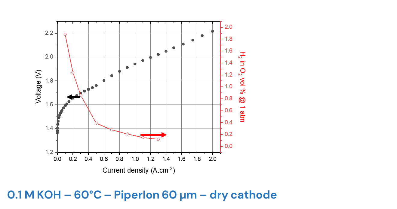 Electrochemical testing | IV curve (EU Target 1.8 V @ 1.5 A/cm²) EIS | |||