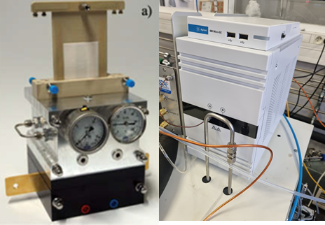 The PL6 pilot line focuses on hydrogen production using anion exchange membrane technology. It provides services ranging from membrane electrode assembly manufacturing up to 200 cm² to electrochemical testing, including IV curves and electrochemical impedance spectroscopy, on single cells up to 200 cm². In addition, an online gas analyzer is connected to the cell to monitor hydrogen permeation across the membrane in real time. Finally, off-line ICP-OES analysis is integrated to quantify trace impurities originating from component degradation that may be present in the anolyte, ensuring reliable performance and durability evaluation under relevant operating conditions for advanced hydrogen systems development.